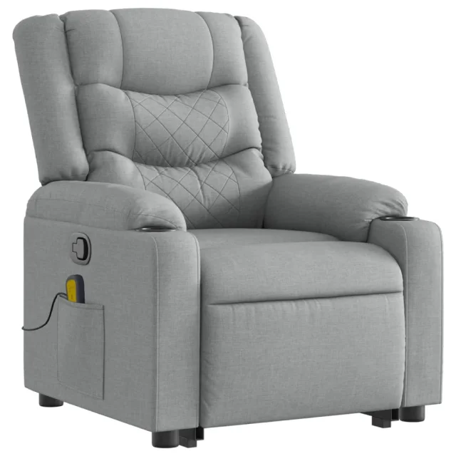 vidaXL Masažni naslanjač s funkcijo vstajanja svetlo sivo blago