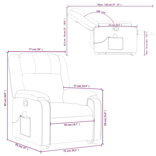 vidaXL Masažni naslanjač s funkcijo vstajanja temno rjavo blago