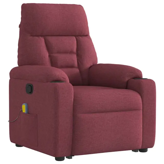 vidaXL Masažni naslanjač s funkcijo vstajanja vinsko rdeče blago