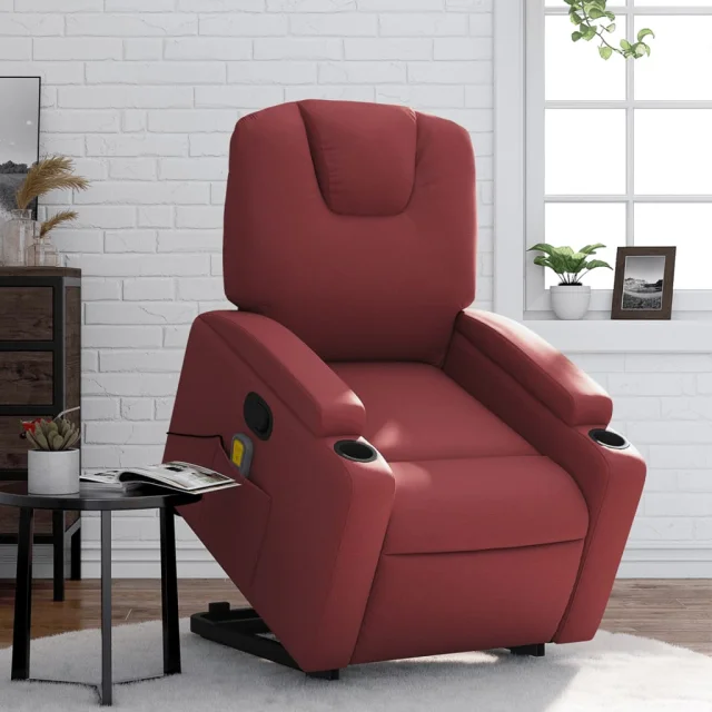 vidaXL Masažni naslanjač s funkcijo vstajanja vinsko rdeče um. usnje