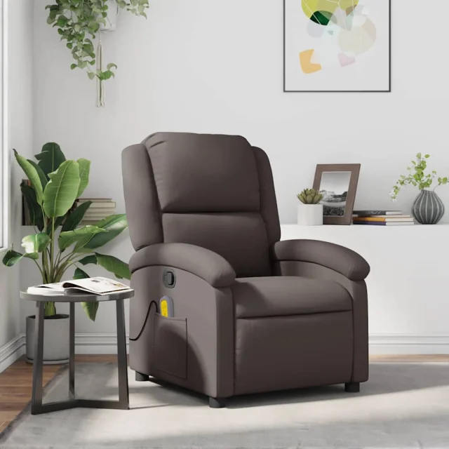 vidaXL Masažni naslanjač temno rjavo pravo usnje