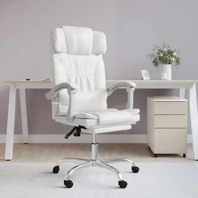 vidaXL Masažni pisarniški stol belo umetno usnje