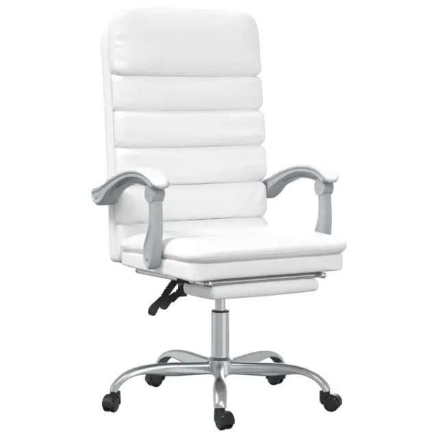 vidaXL Masažni pisarniški stol belo umetno usnje