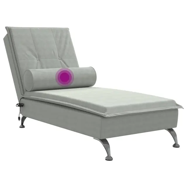 vidaXL Masažni počivalnik z vzglavnikom svetlo sivo žamet