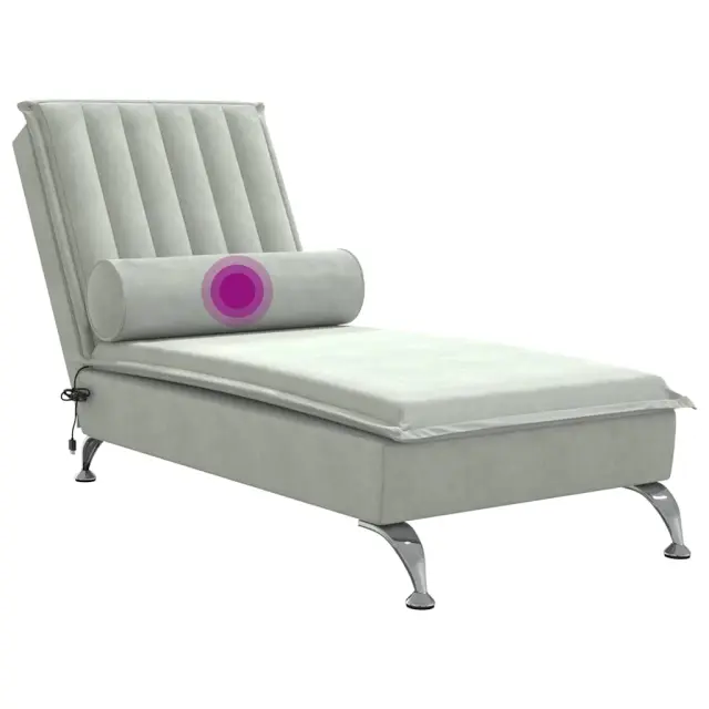 vidaXL Masažni počivalnik z vzglavnikom svetlo sivo žamet