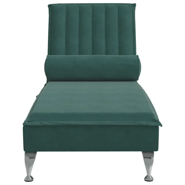 vidaXL Masažni počivalnik z vzglavnikom temno zelen žamet