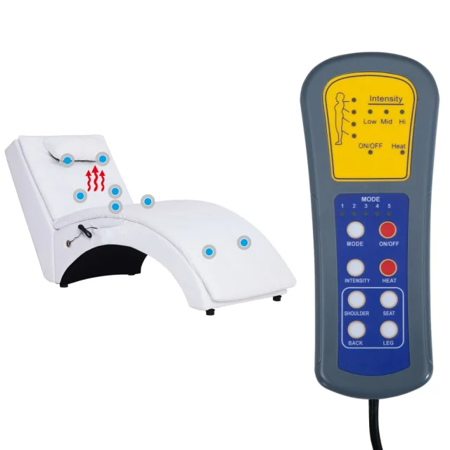 vidaXL Masažni počivalnik z blazino belo umetno usnje