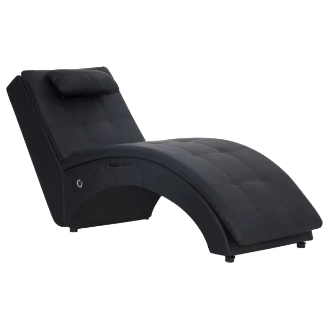 vidaXL Masažni počivalnik z blazino črno umetno usnje