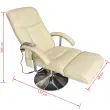Dobra masaža lahko poživi vaše celotno telo -- s tem masažnim stolom se počutite sproščeno in osveženo v nekaj minutah!Ta visokokakovosten masažni stol je ergonomsko zasnovan tako, da vam bo po napornem dnevu zagotovil popolno sprostitev. Celoten sedež je debelo oblazinjen, zato zagotavlja optimalno udobje.Stol ima 10 masažnih šob, ki so zasnovane za masiranje vaše glave, vratu, hrbta, meč itd. Čas masaže je prilagodljiv glede na vaše osebne potrebe. Ta toplotni tretma vam bo v pomoč pri sproščanju pritiska okrog ledvenega predela.Stol je oblečen v kremno belo umetno usnje, zato je preprost za čiščenje. Naslonjalo za hrbet in noge je sinhrono prilagodljivo.Priložen daljinski upravljalnik. Izdelek ima priključek USB, vendar certificiran vir napajanja 5V USB ni priložen.Barva: Kremno belaDimenzije nagnjenega stola: 137 x 68 x 104 cm (D x Š x V)Dimenzije poravnanega stola: 89 x 68 x 112 cm (D x Š x V)Višina od sedeža do vrha naslonjala: 50 cmMaterial: Umetno usnje (PU), kromirano jekloKott nagiba stola: 125-130 stopinjMaksimalna nosilnost: 110 kgTkanina: Bombaž: 13%, Poliester: 20%, Poliuretan: 7%, PVC: 60% 240065
