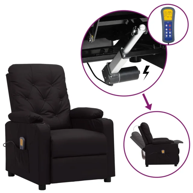 vidaXL Masažni stol s funkcijo vstajanja črno umetno usnje