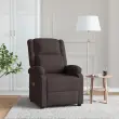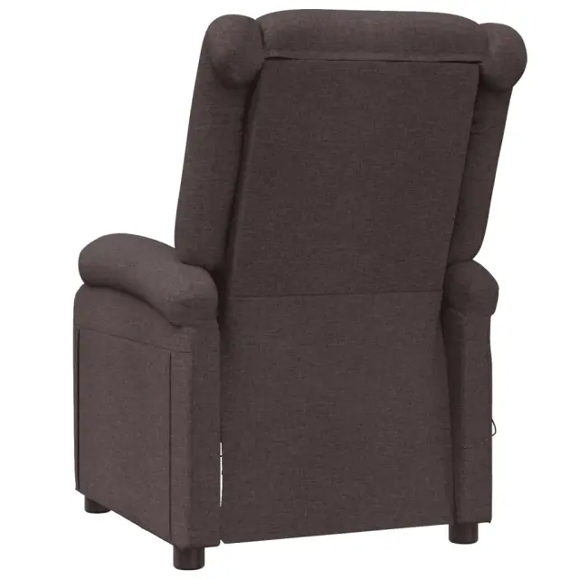 Namestite se in uživajte na tem izjemno udobnem masažnem stolu! Funkcija ročnega nagiba: Ležalnik je posebej zasnovan s 3 položaji nagiba, tako da lahko ročno nastavite naslonjalo in oporo za noge glede na vaše udobje.Funkcija vibriranja: 6 masažnih točk vam omogoča, da izkusite bolje usmerjeno masažo. Poleg tega vam priloženi ročni upravljalnik omogoča izbiro različnih programov masaže. Masažno funkcijo napaja USB priključek, vendar certificiran 5V vir napajanja USB ni priložen.Udobno sedenje: Sedež, naslonjalo za hrbet in široki nasloni za roke, prevlečeni s tkanino, zagotavljajo prijeten in topel občutek, zato se med sedenjem počutite prijetno. Preprosta in čista tkanina je tudi zračna in trpežna.Trden in stabilen okvir: Okvir iz lesa in kovine zagotavlja trdno strukturo in stabilnost. Ta naslanjač je udoben in trpežen.Barva: Temno rjavaMaterial: Blago (100 % poliester), vezan les, železoMaterial polnila: PenaCelotne dimenzije: 70 x 93 x 98 cm (Š x G x V)Dimenzije stola v ležečem položaju: 70 x 141 x 81 cm (Š x G x V)Velikost sedeža: 49 x 53 cm (Š x G)Višina sedeža od tal: 45 cmZ USB-jemS stranskim žepomNapetost: DC 5 VMožnosti: Masaža brez ogrevanjaTip masaže: 6 točkovna vibracijska masažaNastavljivo naslonjalo za hrbet in nogeMaksimalna nosilnost: 110 kgPotrebno sestavljanje: Da 342431