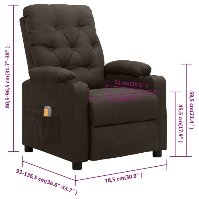 vidaXL Masažni stol temno rjavo blago