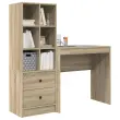 • Vključeni komponenti: Miza ima dobro zasnovane police in predale, tako da imaš vse pri roki. Police za tvoje knjige ali dekoracijo, medtem ko predali skrijejo tvoje stvari in ti pomagajo vzdrževati red.