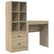 • Vključeni komponenti: Miza ima dobro zasnovane police in predale, tako da imaš vse pri roki. Police za tvoje knjige ali dekoracijo, medtem ko predali skrijejo tvoje stvari in ti pomagajo vzdrževati red.