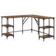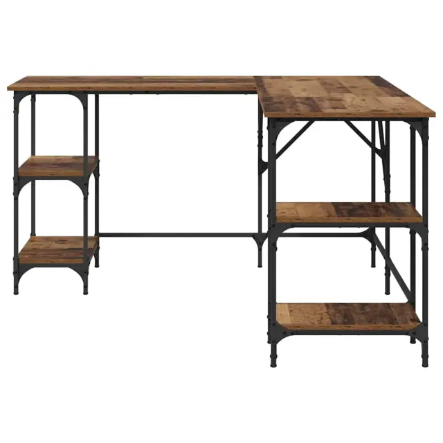 Ta kotniška miza s policami je odličen dodatek za vsak študijski ali pisarniški prostor. Ima močan industrijski slog, ki povezuje surove materiale s sodobnim dizajnom. Oblikovana je tako, da se prilega v kote, kar omogoča več prostora za delo, kot je nastavitev več monitorjev. Njena površinska tekstura prinaša vintage občutek, hkrati pa ponuja dovolj prostora za vaše potrebščine.