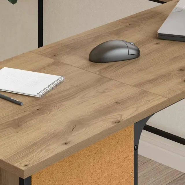 Ta nastavljiv kotni pisalni miz z policami je sodoben kos, zasnovan za funkcionalnost. S svojim industrijskim stilom prinaša urbano vzdušje v vaš dom. Ima široko površino, dovolj veliko za papirje ali monitorje, kar je super za poklicne in kreativne ljudi. Njena robustna industrijska estetika iz inženirskega lesa je tako vizualno kot funkcionalno privlačna, kar jo naredi za osrednji del vsakega moderna doma ali pisarne.