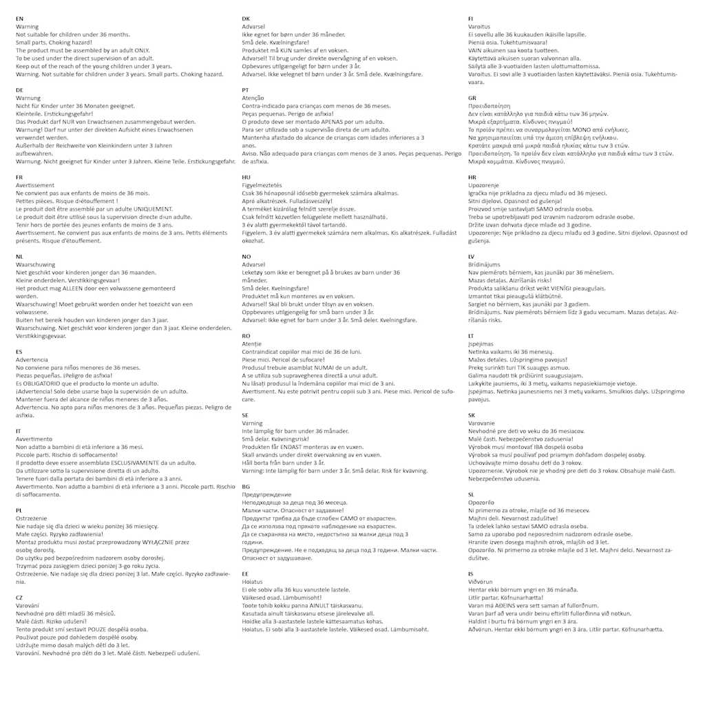 Opozorilo Ni primerno za otroke, mlajše od 36 mesecev. Majhni deli. Nevarnost zadušitve! Ta izdelek lahko sestavi SAMO odrasla oseba. Samo za uporabo pod neposrednim nadzorom odrasle osebe. Hranite izven dosega majhnih otrok, mlajših od 3 let. Opozorilo. Ni primerno za otroke mlajše od 3 let. Majhni delci. Nevarnost zadušitve.
