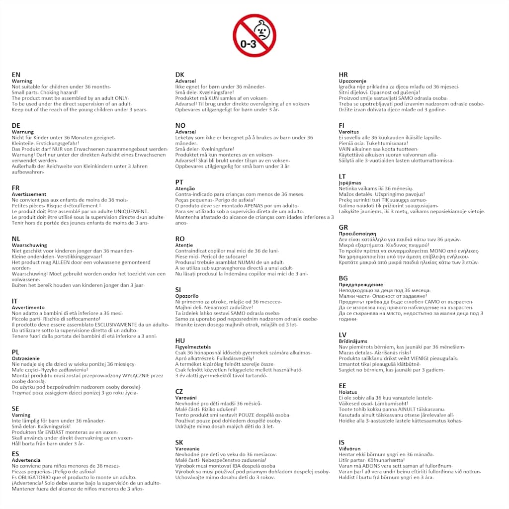 Opozorilo. Ni primerno za otroke mlajše od 3 let. Majhni delci. Nevarnost zadušitve.