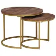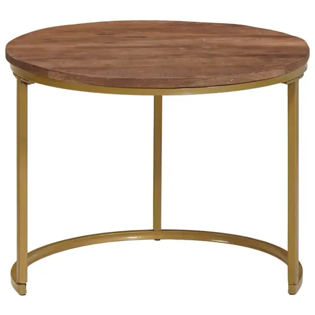 Ta komplet gnezdečih klubski miz združuje naravno lepoto mangovega lesa in industrijski šarm prašno lakiranega jekla. Te mize dopolnjujejo sodoben prostor s svojo elegantno, okroglo silhueto in minimalističnim dizajnom. Super so za dnevne sobe, saj ponujajo uporabno rešitev za prikaz okrasnih predmetov, pijač ali za organiziranje revij in knjig. Kombinacija materialov z dobro zasnovo ustvarja osrednjo točko, ki združuje stil in funkcionalnost.