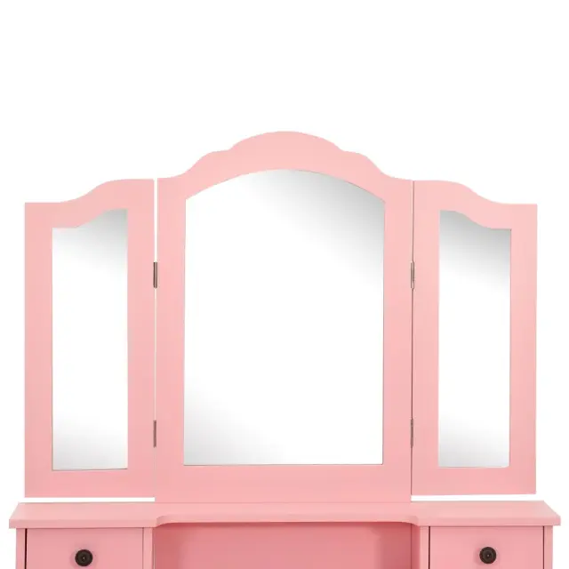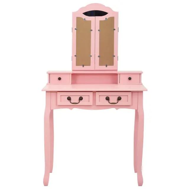 vidaXL Mizica za ličenje s stolčkom roza 80x69x141 cm les pavlovnije