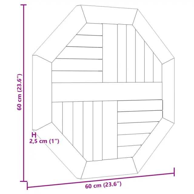 vidaXL Mizna plošča 60x60x2,5 cm osmerokotna trdna tikovina