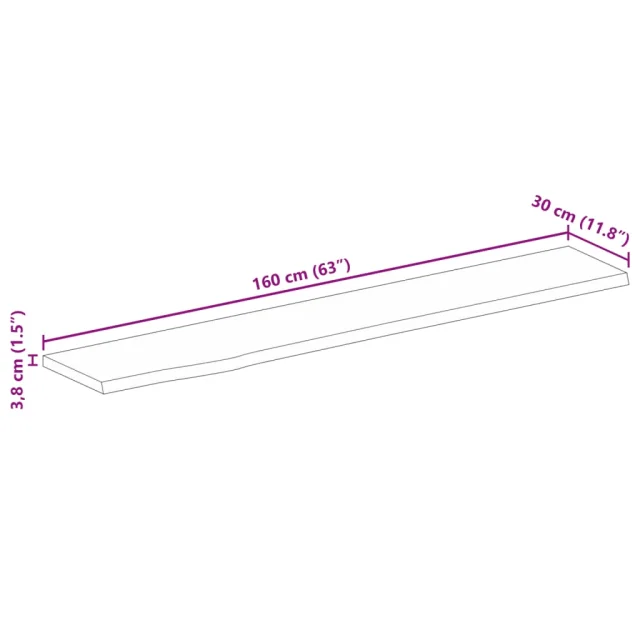 vidaXL Mizna plošča z naravnim robom 160x30x3,8 cm trden mangov les