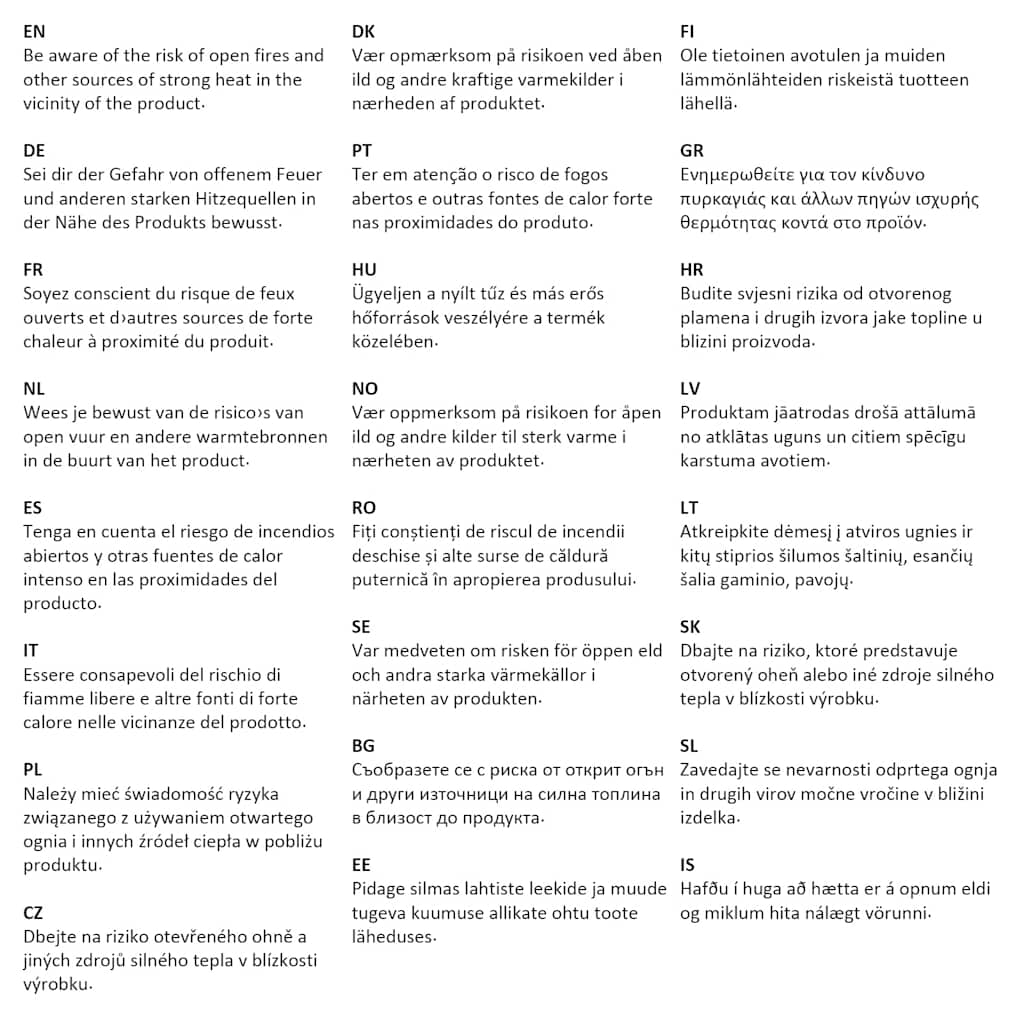 Zavedajte se nevarnosti odprtega ognja in drugih virov močne vročine v bližini izdelka.