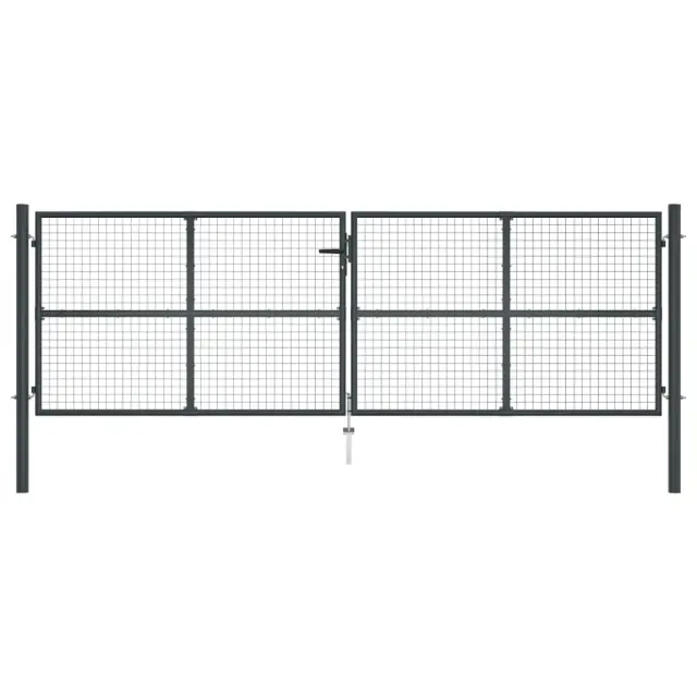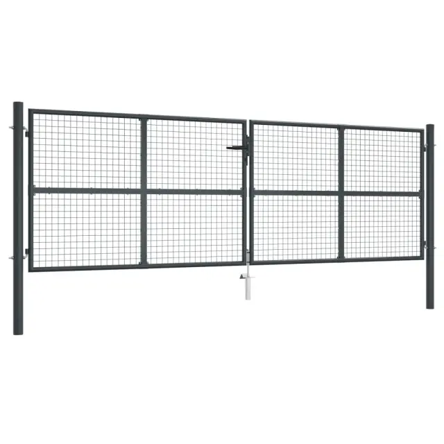 Vrtna vrata se lahko uporabljajo kot praktičen in moderen vhod za vaš vrt, dvorišče in teraso, saj se ponašajo z visoko ravnjo stabilnosti in vzdržljivosti. Vrtna vrata odlikuje odlična izdelava iz pocinkanega jekla s prašnim premazom, zato so odporna na rjavenje in tvorijo trdno strukturo. Imajo dva stranska stebrička s tečaji za preprosto namestitev. Imajo tudi talni količek za velik spodnji sornik, zato se lahko vrata dobro zaklene. Paket vsebuje tudi tri ključe.Barva: AntracitnaMaterial: Pocinkano jeklo s prašnim premazomCelotna velikost: 400 x 175 cm (Š x V)Višina vrat: 125 cmPremer stebrička: 60 mmS talnim količkomPaket vsebuje tudi tri ključe 145778