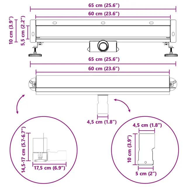 vidaXL Na steni nameščena odtočna rešetka za tuš srebrna 60 cm