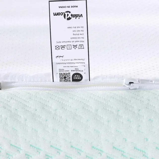 • Vrhunski poliester: Ta zgornja plast je izdelana iz mehkega poliestra, kar zagotavlja udoben občutek med spanjem. Trpežnost poliestra zagotavlja dolgo življenjsko dobo in mehkobo, kar prispeva k vašemu udobju. Material zagotavlja tudi zračnost, da vas ohladi in udobno drži čez noč.
