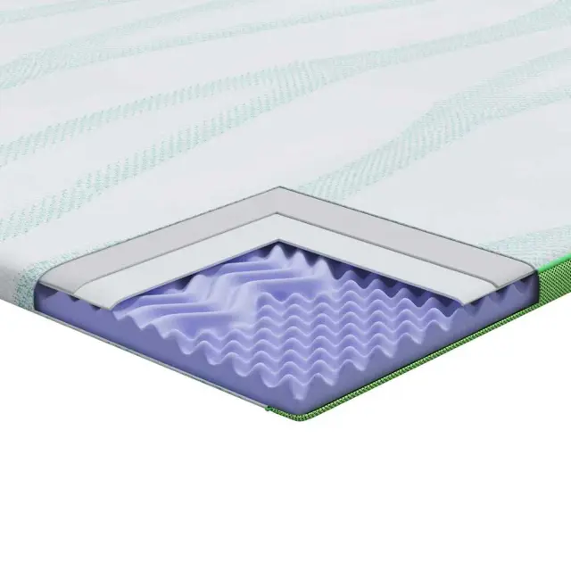 • Vrhunski poliester: Ta zgornja plast je izdelana iz mehkega poliestra, kar zagotavlja udoben občutek med spanjem. Trpežnost poliestra zagotavlja dolgo življenjsko dobo in mehkobo, kar prispeva k vašemu udobju. Material zagotavlja tudi zračnost, da vas ohladi in udobno drži čez noč.