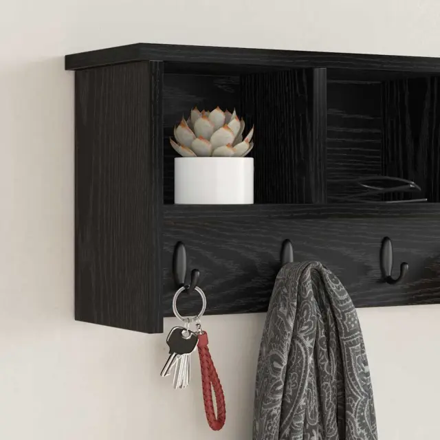 • Police, pritrjene na steno Rack ima police, pritrjene na steno, kar je idealno za varčevanje s talnim prostorom in ohranjanje urejenega videza. Te police nudijo prostor za torbe, kape ali dekorativne predmete, kar omogoča kar najbolje izkoristiti vaš hodnik ali vhodni prostor.