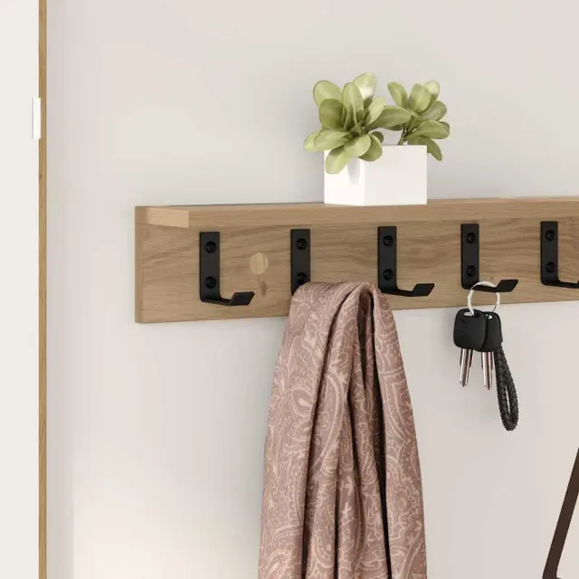 • Izdelan iz inženirskega lesa Ta obešalnik uporablja močan in trpežen inženirski les, ki ohranja stabilnost, hkrati pa nudi lep videz. Ta material je izbran zaradi svoje odpornosti na vsakodnevno obrabo, kar zagotavlja dolgo življenjsko dobo brez žrtvovanja elegance.