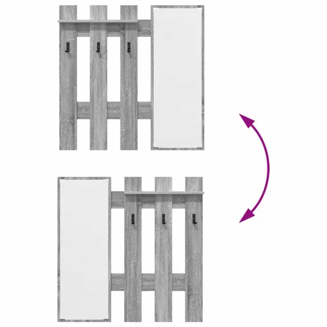 Ta stenski obešalnik za plašče združuje shranjevalno funkcijo z modernim look-om, kar ga naredi idealnega za vsak hodnik ali vhod. Njegova elegantna pravokotna oblika iz inženirskega lesa nudi preprosto rešitev za organizacijo plaščev, dodatkov in vsakih potrbščin.