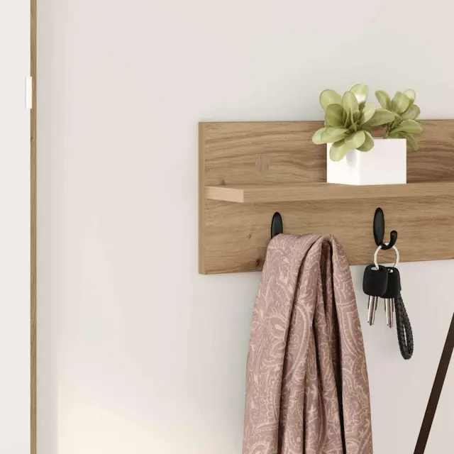 • Trdni kavlji: Ima močne kavlje, ki varno držijo različne elemente. Ti kavlji so pametno nameščeni, da najbolje izkoristijo prostor, tako da nudijo dovolj mesta za plašče, šal in torbe ter zmanjšujejo zmedo. Njihova stabilna konstrukcija zagotavlja, da stvari ostanejo varne.