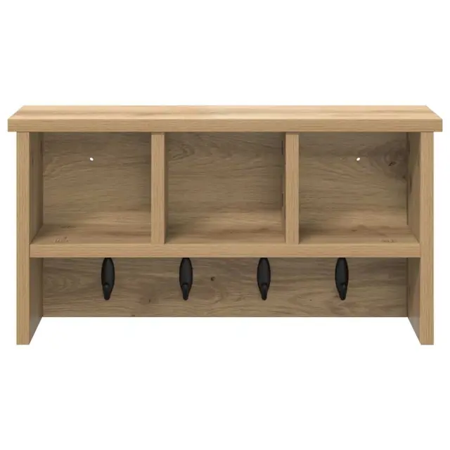 • Police, pritrjene na steno Rack ima police, pritrjene na steno, kar je idealno za varčevanje s talnim prostorom in ohranjanje urejenega videza. Te police nudijo prostor za torbe, kape ali dekorativne predmete, kar omogoča kar najbolje izkoristiti vaš hodnik ali vhodni prostor.