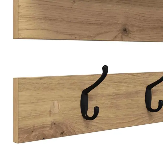 • Inženirski les: Obešalnik je narejen iz močnega inženirskega lesa, ki dodaja modernesko privlačnost in dolgotrajno moč. Izbira materiala, ki je vzdržljiv in izgleda odlično, ga naredi idealnega za sodobne prostore. Ta les spoštuje stabilnost in nudi dolgotrajno rešitev za shranjevanje.