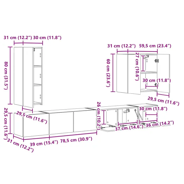 • 1 x omarica za televizor: 30 x 31 x 80 cm (ŠxVxD)