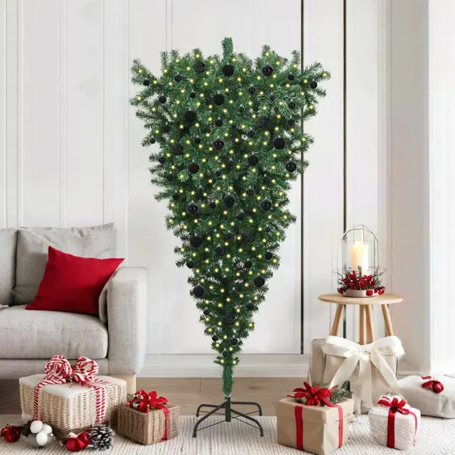 vidaXL Narejen umetni božični drevesek s prevrnjenim dizajnom in setom kroglic