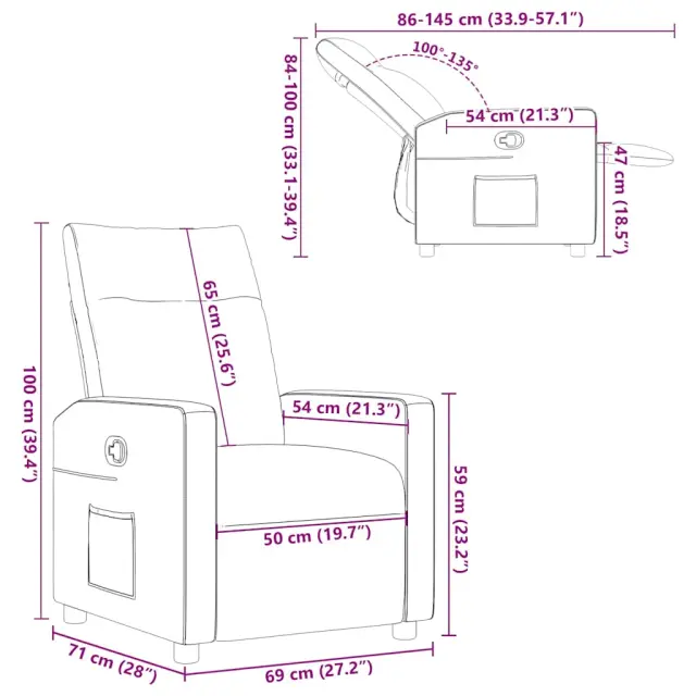 • Priročen stranski žep: Ta naslanjač ima stranski žep za daljinski upravljalnik, v katerem boste imeli svoje potrebščine na dosegu roke.