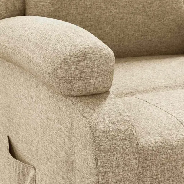 • Udobno sedenje: Sedež, naslonjalo za hrbet in široki nasloni za roke, prevlečeni s tkanino, zagotavljajo prijeten in topel občutek, zato se med sedenjem počutite prijetno. Preprosta in čista tkanina je tudi zračna in trpežna.