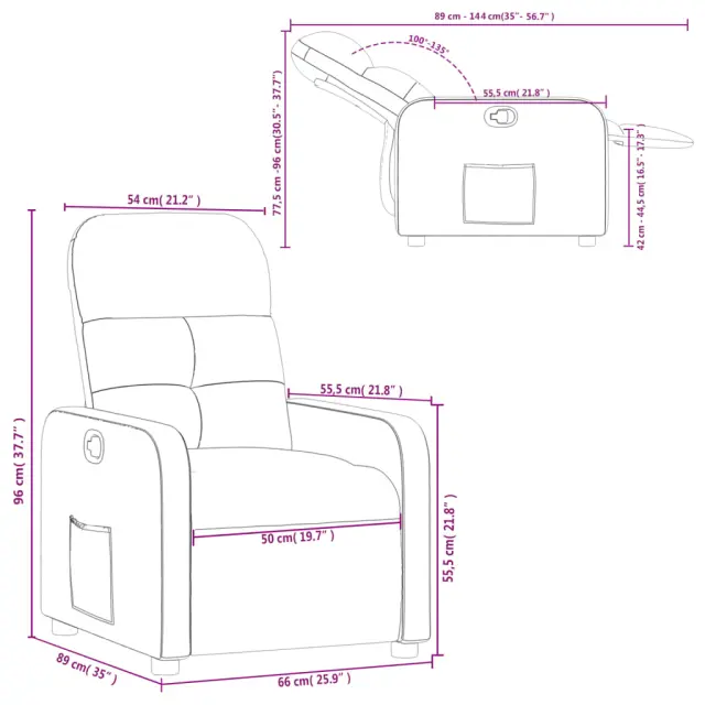 • Priročen stranski žep: Ta naslanjač ima stranski žep, v katerem boste imeli svoje potrebščine na dosegu roke.