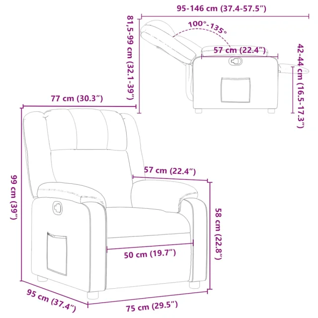 • Dimenzije v sedečem položaju: 77 x 95 x 99 cm (Š x G x V)