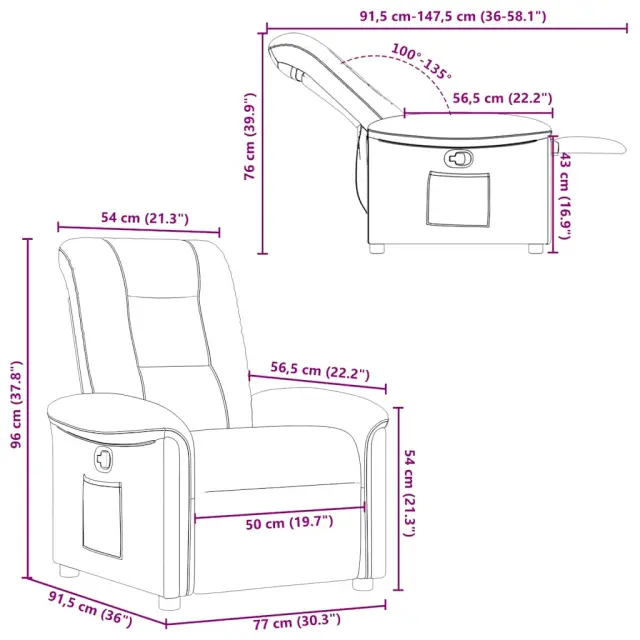 • Priročen stranski žep: Ta naslanjač ima stranski žep za daljinski upravljalnik, v katerem boste imeli svoje potrebščine na dosegu roke.