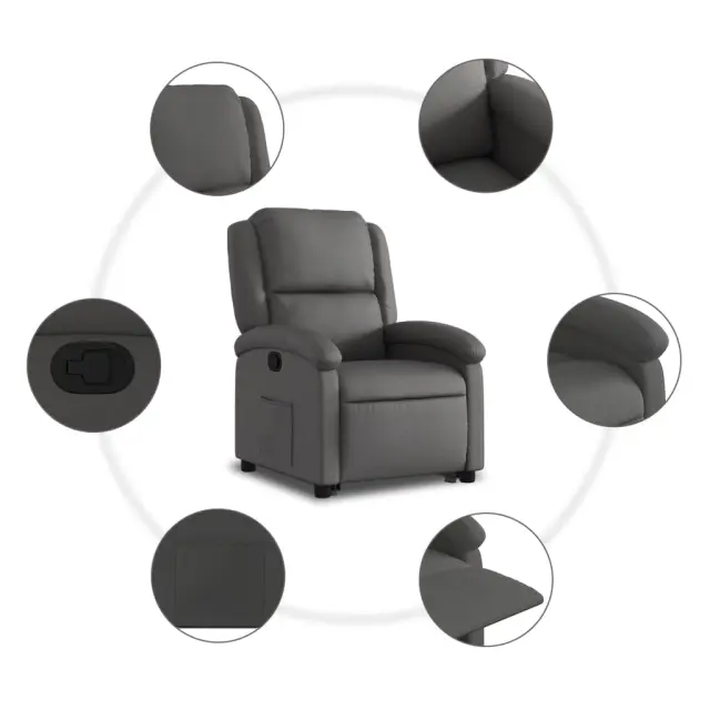 vidaXL Naslanjač s funkcijo vstajanja sivo pravo usnje