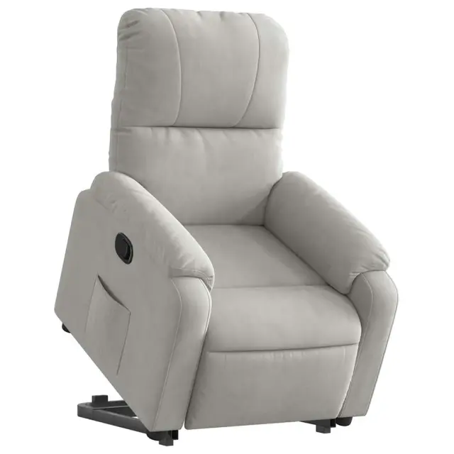vidaXL Naslanjač s funkcijo vstajanja sv. siva tkanina iz mikrovlaken