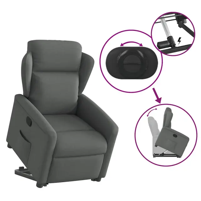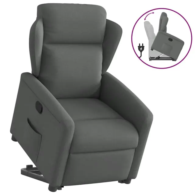 vidaXL Naslanjač s funkcijo vstajanja temno sivo blago