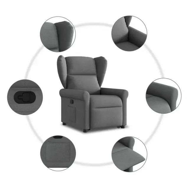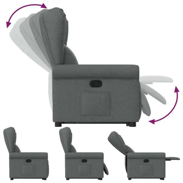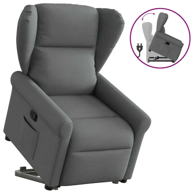 vidaXL Naslanjač s funkcijo vstajanja temno sivo blago