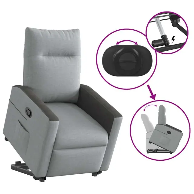 vidaXL Naslanjač s funkcijo vstajanja svetlo sivo blago