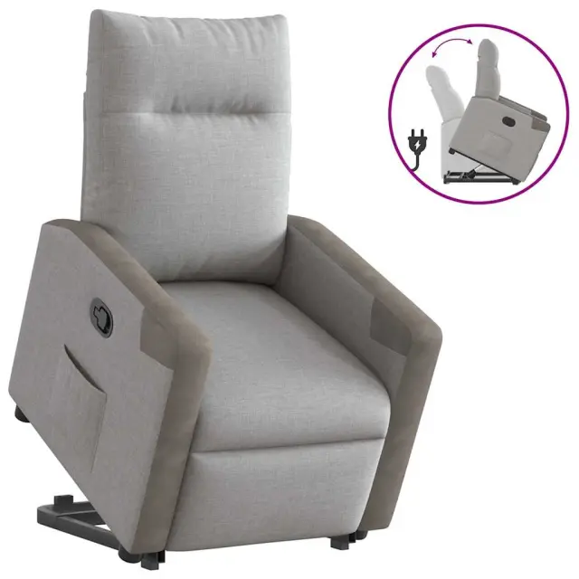 vidaXL Naslanjač s funkcijo vstajanja sivo blago